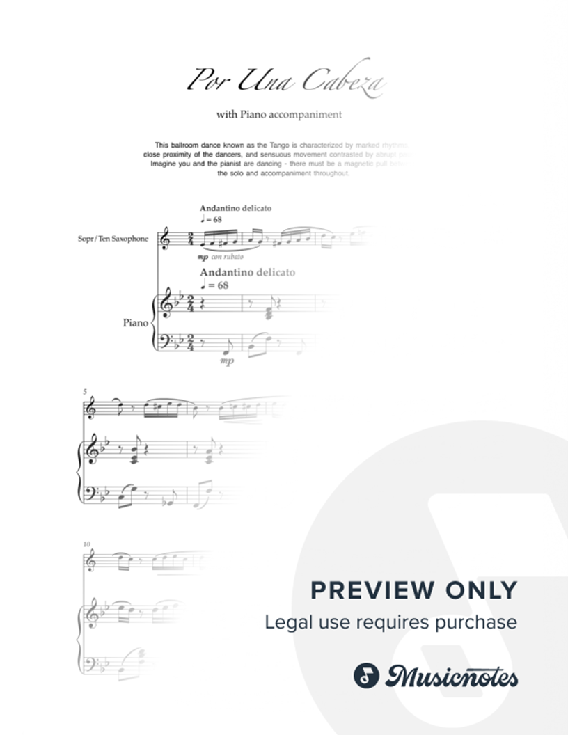 Por una Cabeza - Soprano or Tenor Saxophone & Piano |