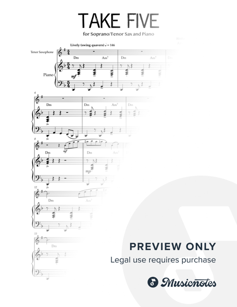 Take Five - Soprano or Tenor Saxophone & Piano |