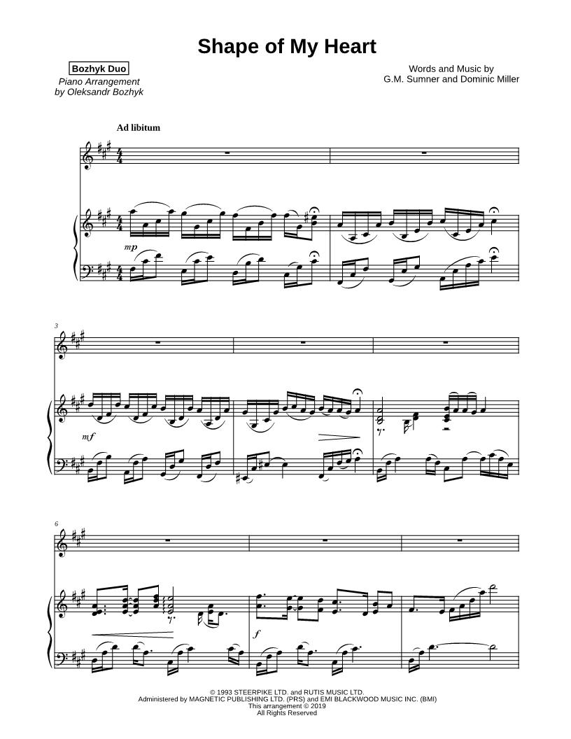 Shape of My Heart - Violin & Piano |