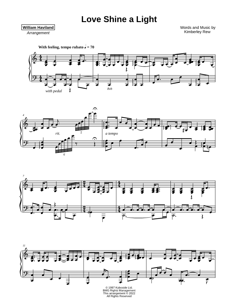 Many of the arrangements on Musicnotes have transpositions available, typically in C Major, as well as 3 sharps and 3 flats. If you do not see your desired key, you can request a transposition by reaching out to Customer Support.