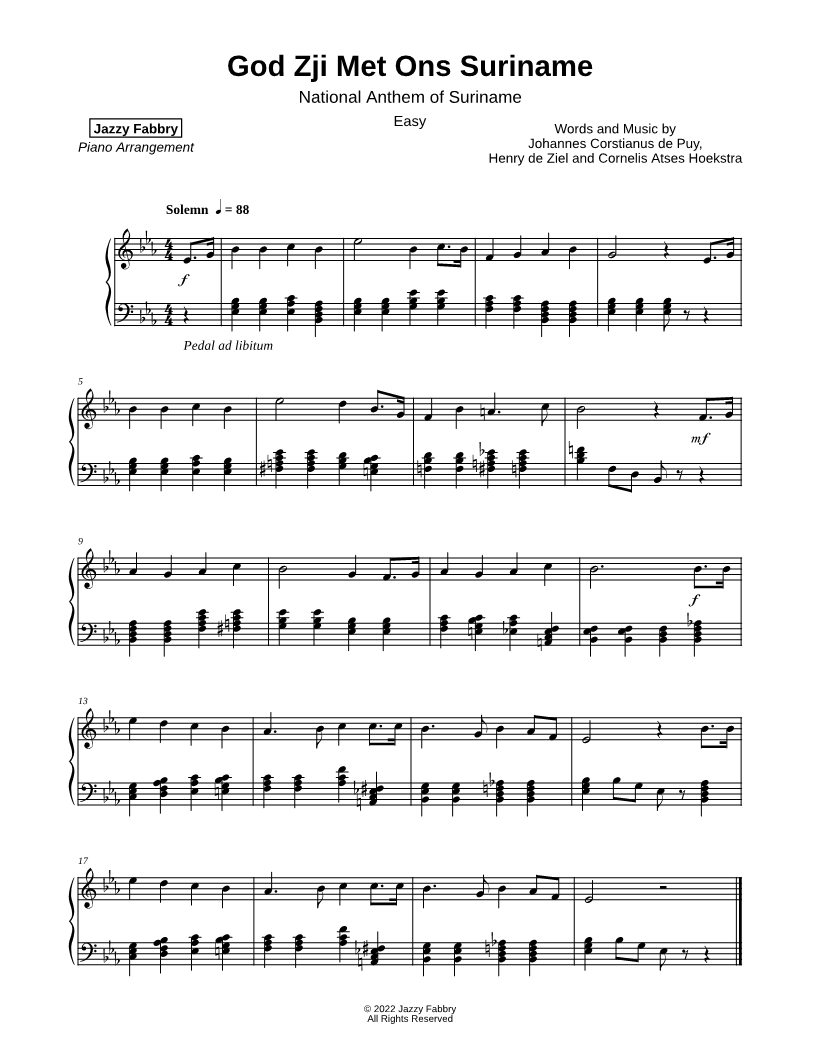 God Zij Met Ons Suriname [easy] |