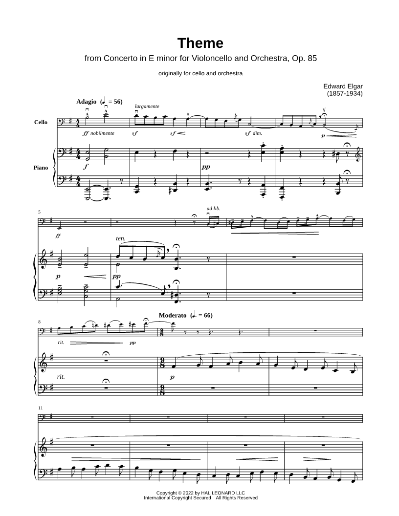 Theme from Cello Concerto in E Minor, Op. 85 |