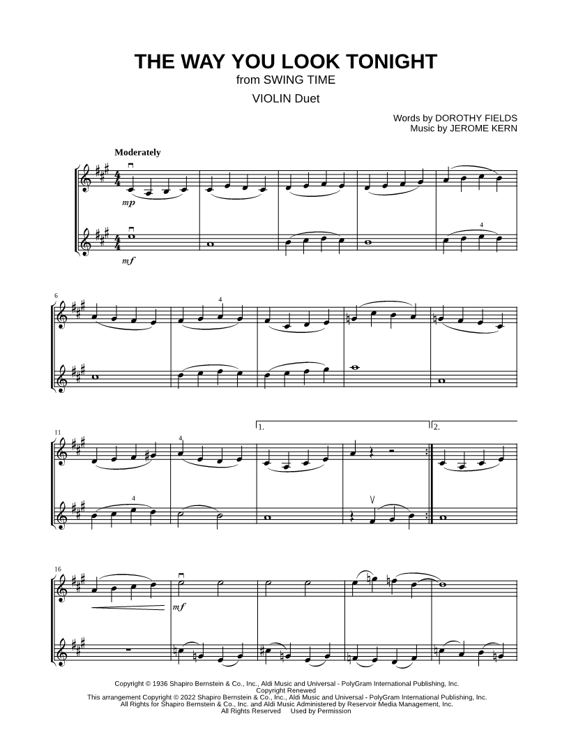 The Way You Look Tonight - Violin Duet |
