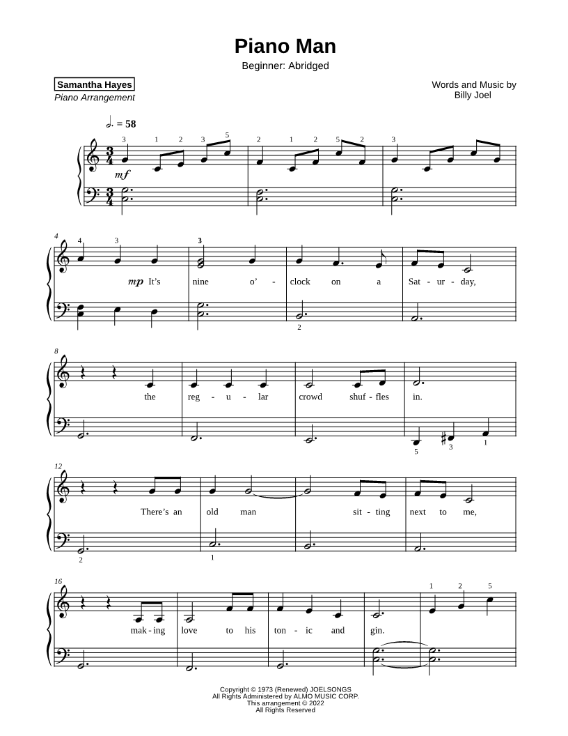 Piano Man [beginner - abridged] |