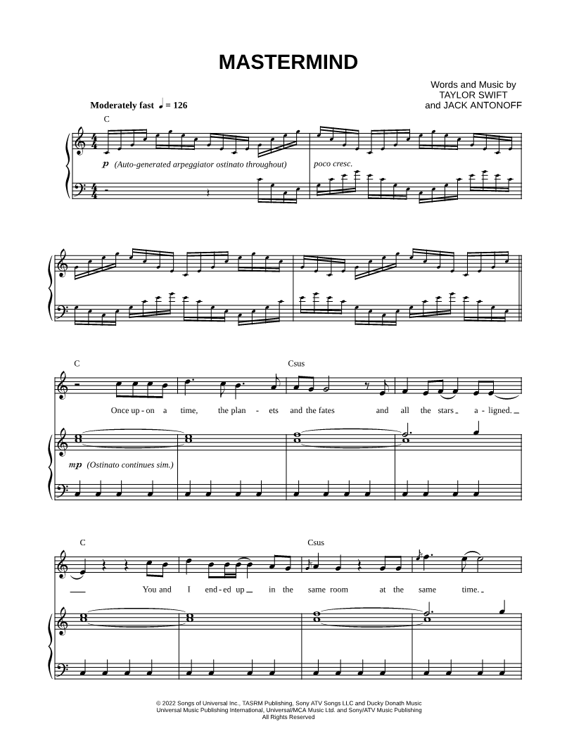 Many of the arrangements on Musicnotes have transpositions available, typically in C Major, as well as 3 sharps and 3 flats. If you do not see your desired key, you can request a transposition by reaching out to Customer Support.