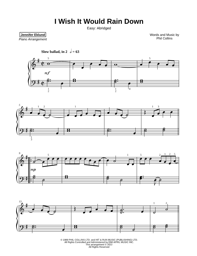 I Wish It Would Rain Down [easy - abridged] |