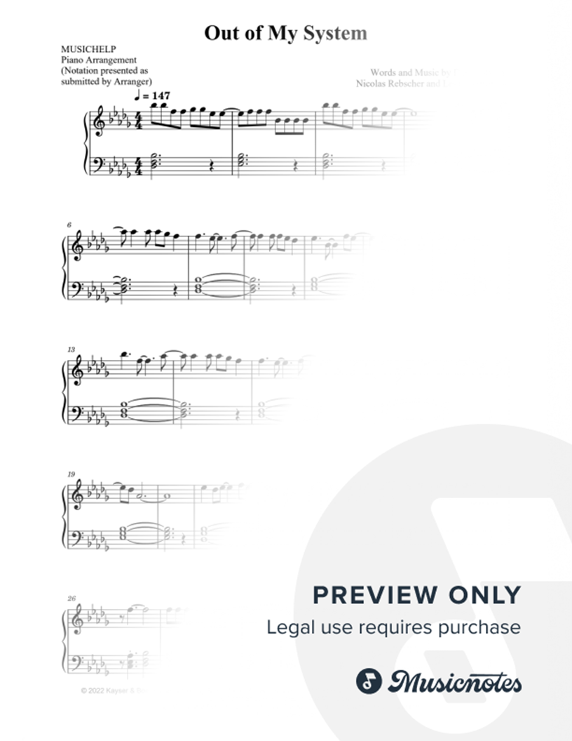 Many of the arrangements on Musicnotes have transpositions available, typically in C Major, as well as 3 sharps and 3 flats. If you do not see your desired key, you can request a transposition by reaching out to Customer Support.