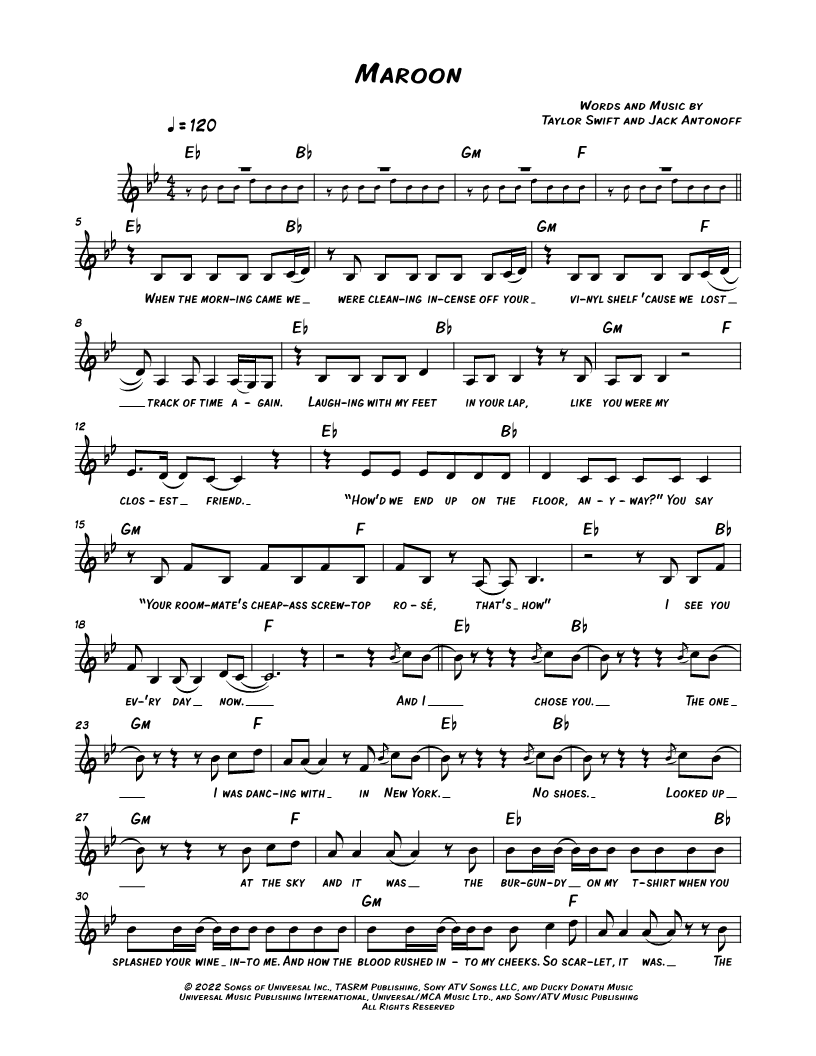 Leadsheets typically only contain the lyrics, chord symbols and melody line of a song and are rarely more than one page in length. Musicians will often use these skeletons to improvise their own arrangements. Leadsheets often do not contain complete lyrics to the song.