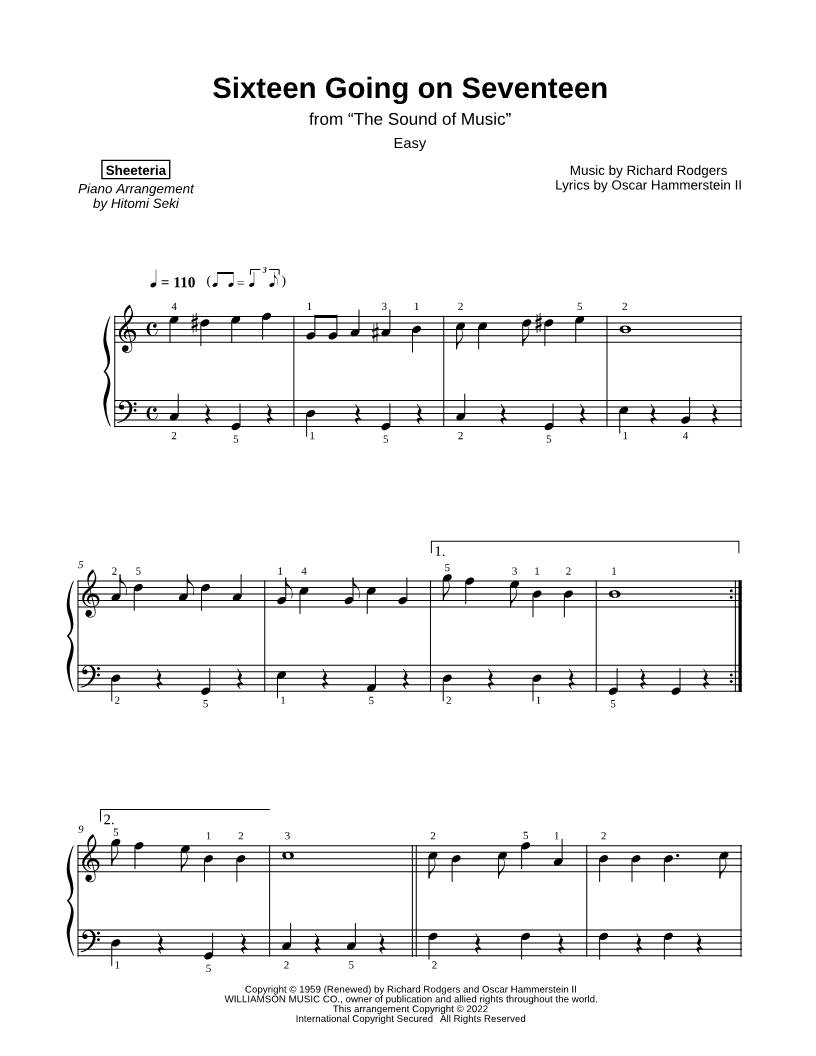 Sixteen Going on Seventeen [easy] |