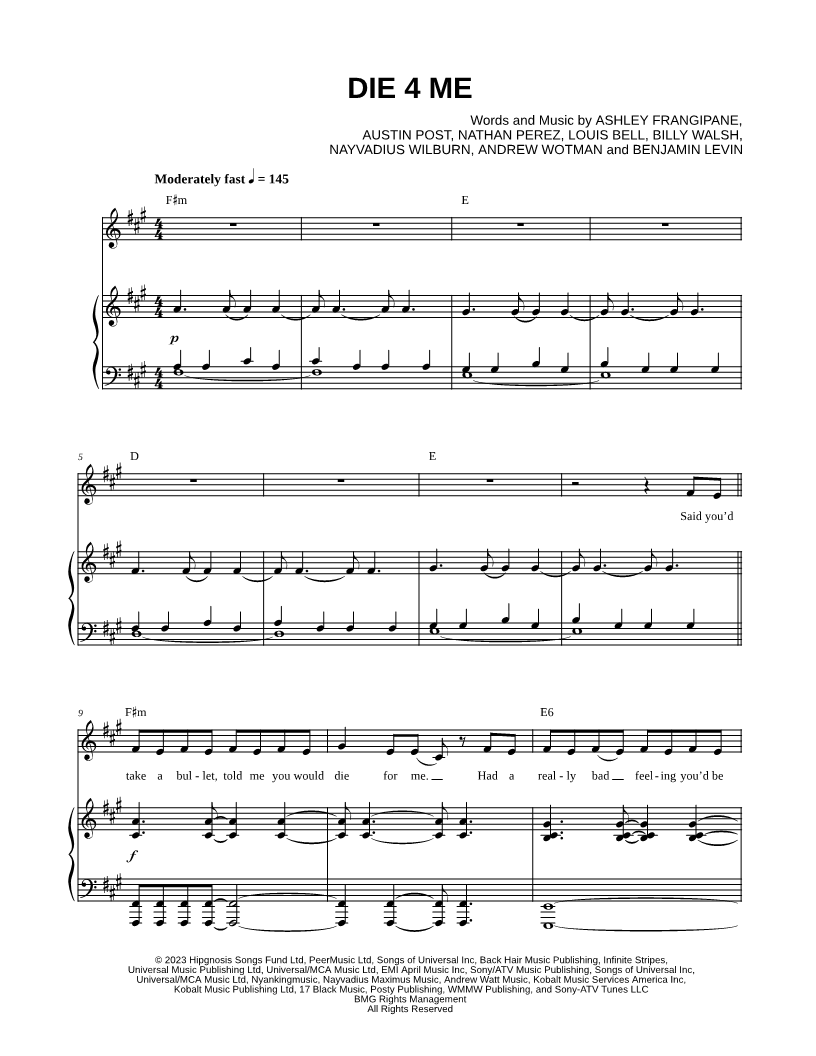 Musicnotes sells a wide variety of digital sheet music products including Singer Pros, Beginner Notes, Choral music, Piano Solos, Lead Sheets, Piano/Vocal/Guitar, Solo and Accompaniment, and fretted instrument tablature.