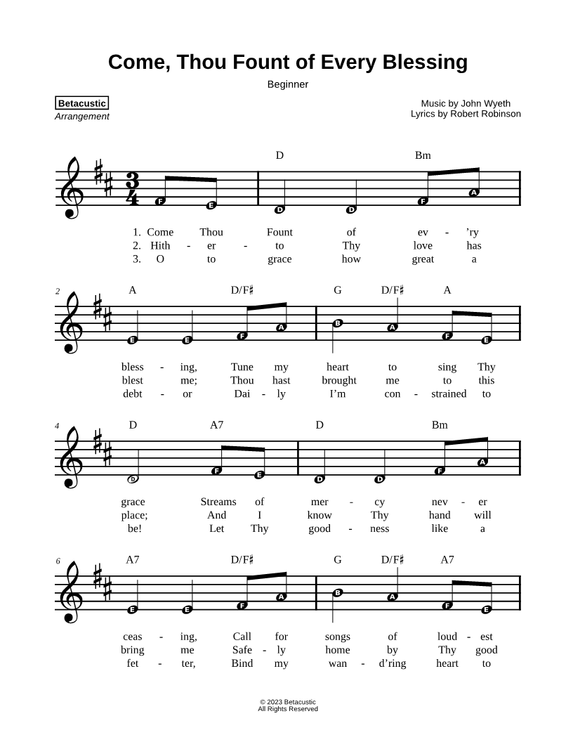 Come, Thou Fount of Every Blessing [beginner] |