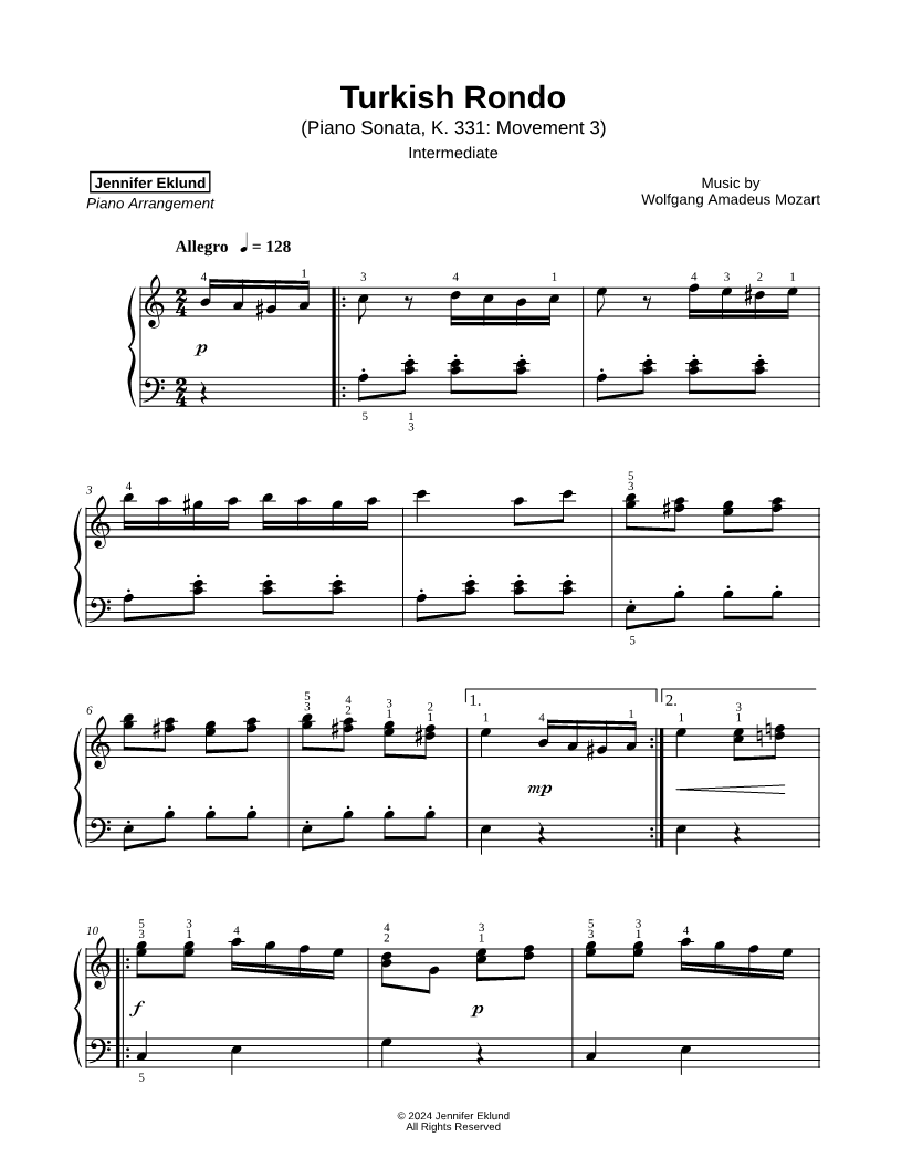 Piano Sonata, K. 331: Rondo Alla Turca [intermediate] |