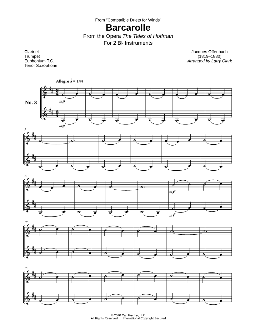 Barcarolle - Bb Instrument Duet |