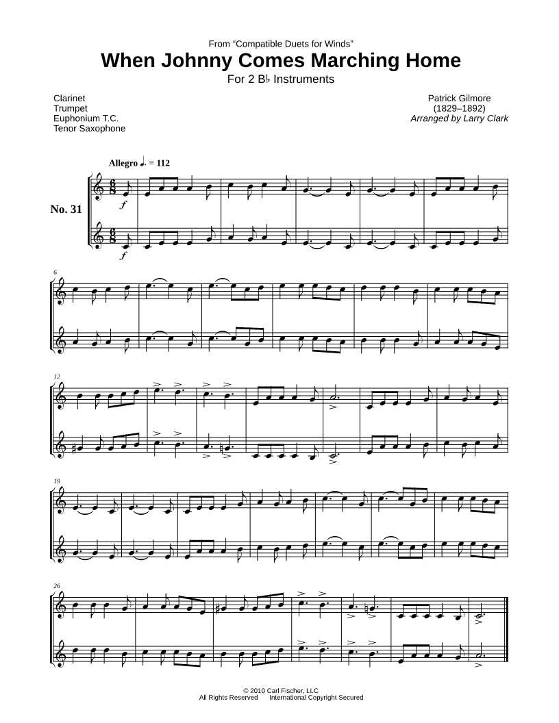 When Johnny Comes Marching Home - Bb Instrument Duet |