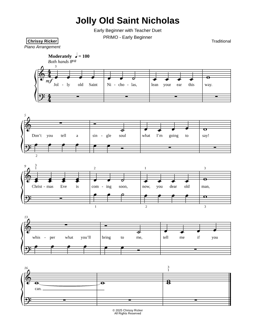 Jolly Old Saint Nicholas [early beginner] |