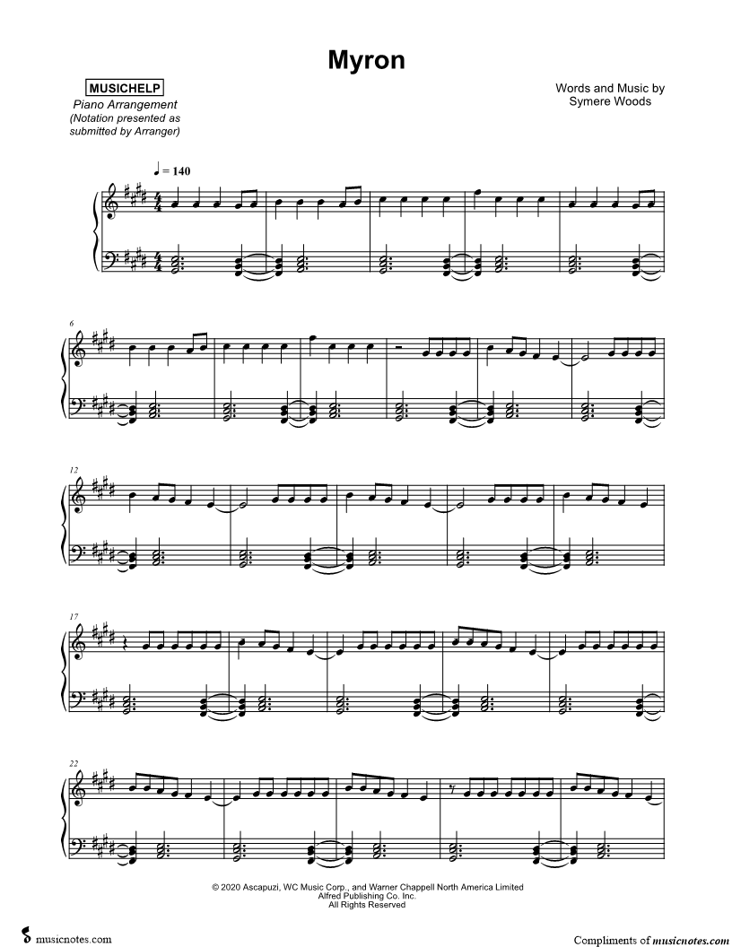 Many of the arrangements on Musicnotes have transpositions available, typically in C Major, as well as 3 sharps and 3 flats. If you do not see your desired key, you can request a transposition by reaching out to Customer Support.
