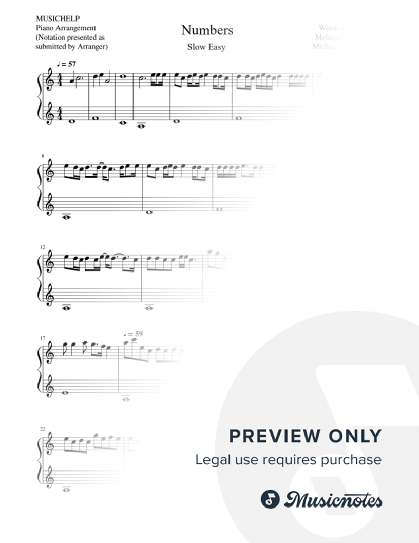 Many of the arrangements on Musicnotes have transpositions available, typically in C Major, as well as 3 sharps and 3 flats. If you do not see your desired key, you can request a transposition by reaching out to Customer Support.