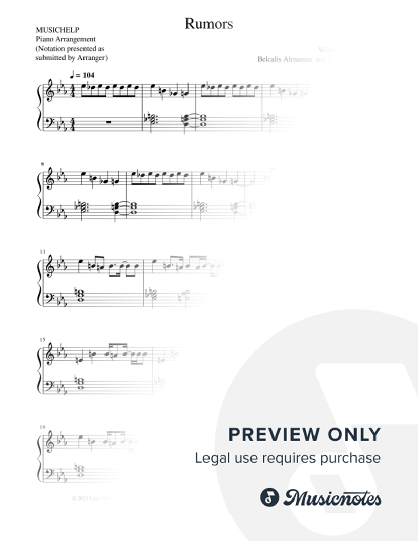 Many of the arrangements on Musicnotes have transpositions available, typically in C Major, as well as 3 sharps and 3 flats. If you do not see your desired key, you can request a transposition by reaching out to Customer Support.