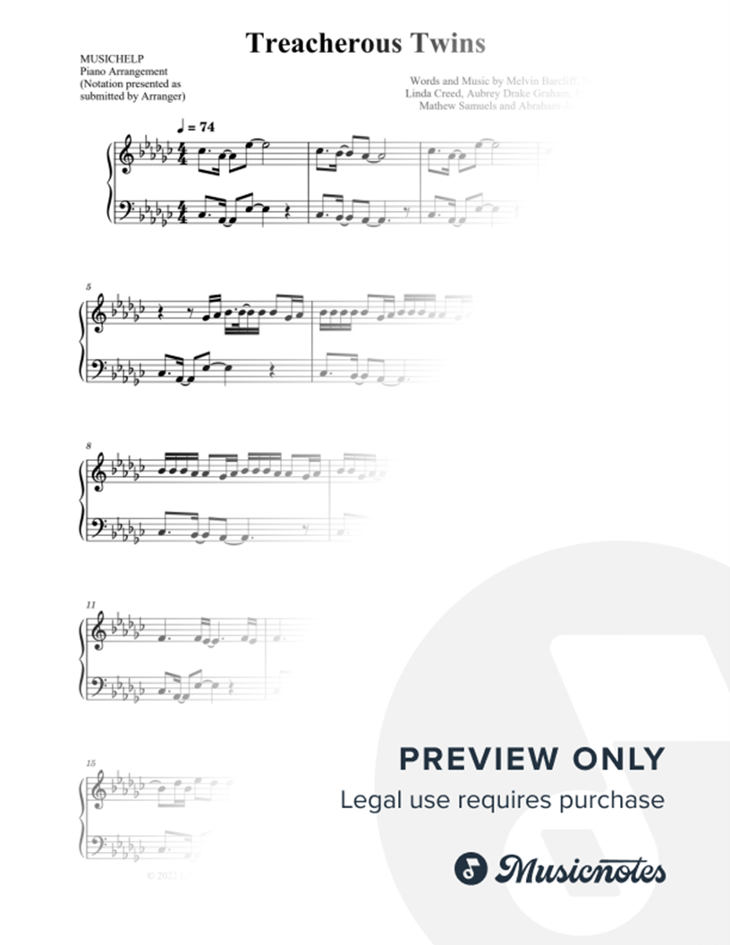 Many of the arrangements on Musicnotes have transpositions available, typically in C Major, as well as 3 sharps and 3 flats. If you do not see your desired key, you can request a transposition by reaching out to Customer Support.