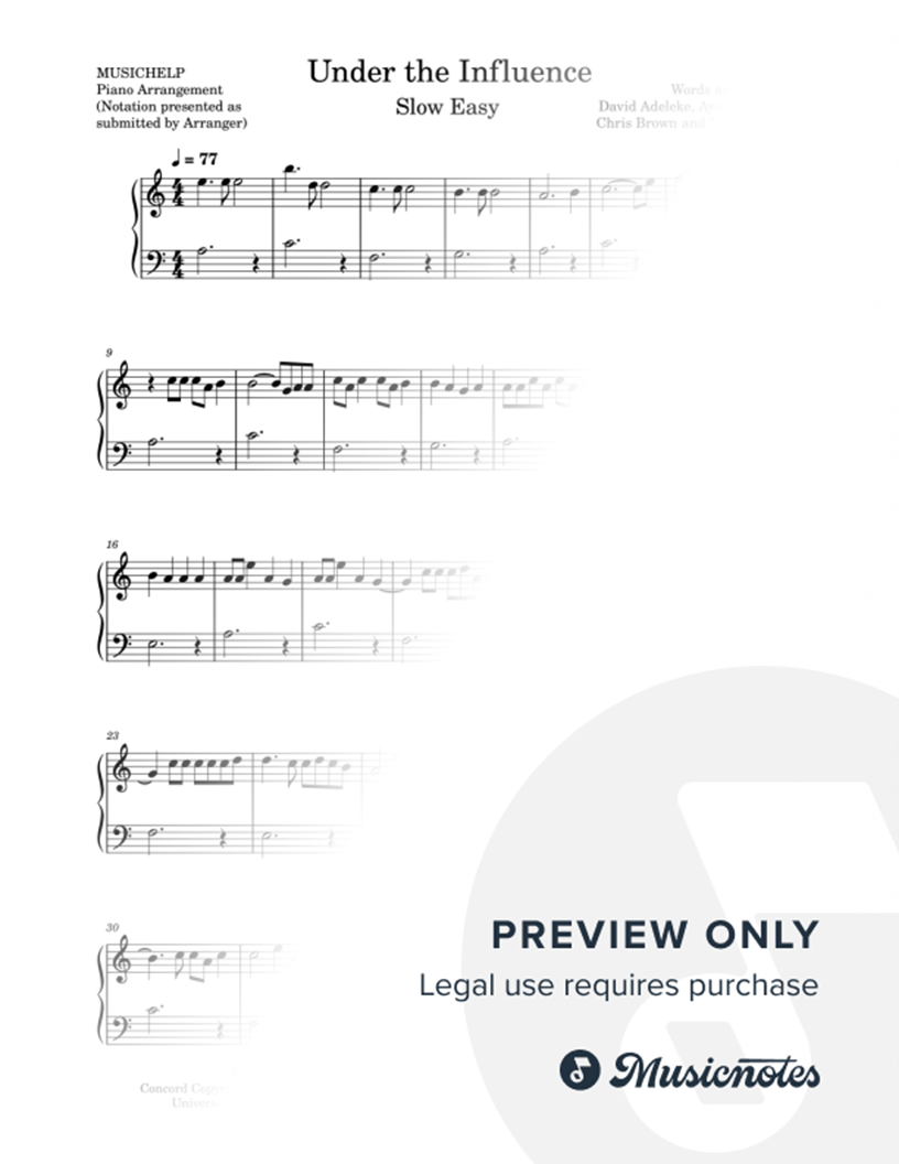 Many of the arrangements on Musicnotes have transpositions available, typically in C Major, as well as 3 sharps and 3 flats. If you do not see your desired key, you can request a transposition by reaching out to Customer Support.