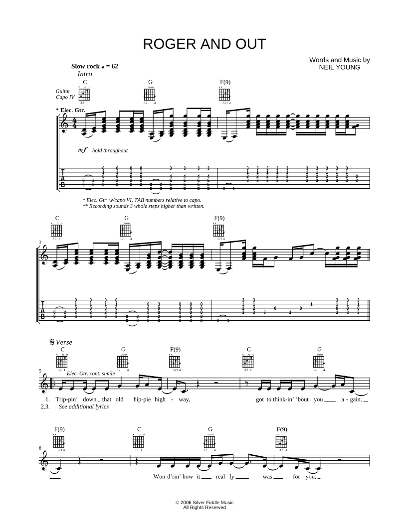 Lyrics/Melody/Guitar Leadsheet Guitar TAB |