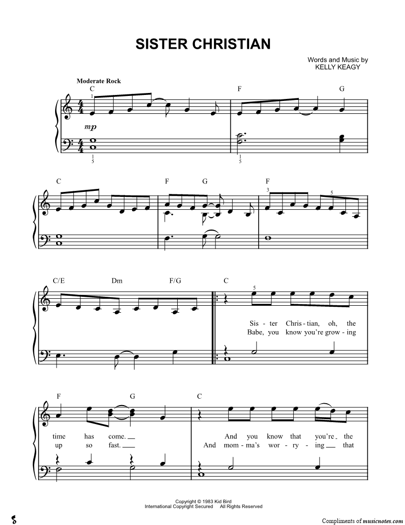 Sister Christian, oh, the time has come. |
