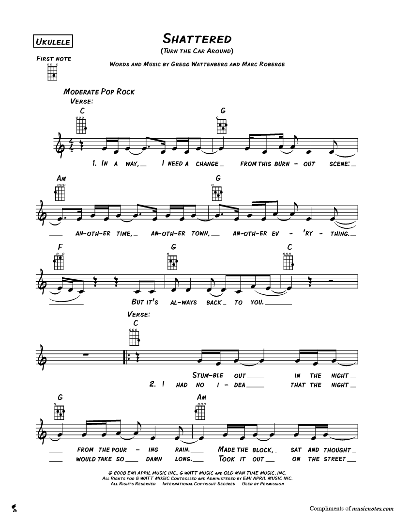 Ukulele/Vocal/Chords Leadsheet |