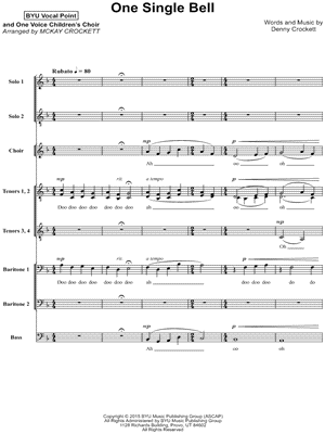 Browse our 2 arrangements of "One Single Bell." Sheet music is available for Piano, Children's Choir, SATB Choir and 2 others with 3 scorings in 5 genres. Find your perfect arrangement and access a variety of transpositions so you can print and play instantly, anywhere.