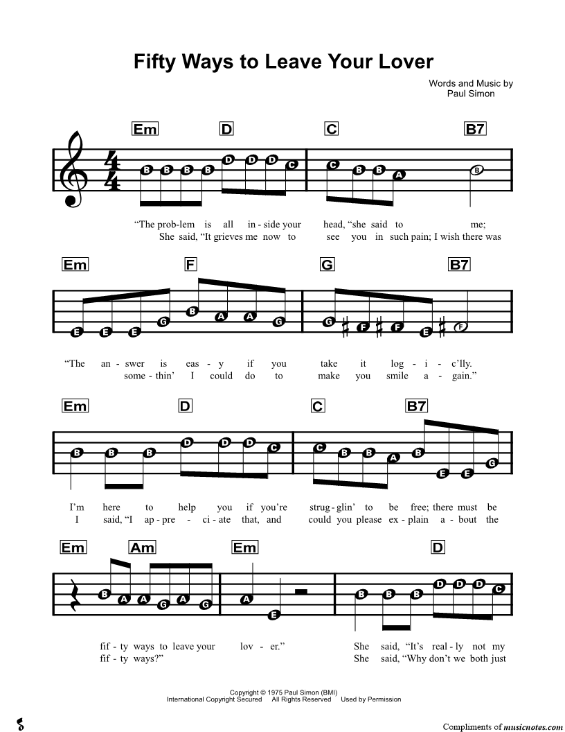 Fifty Ways to Leave Your Lover |