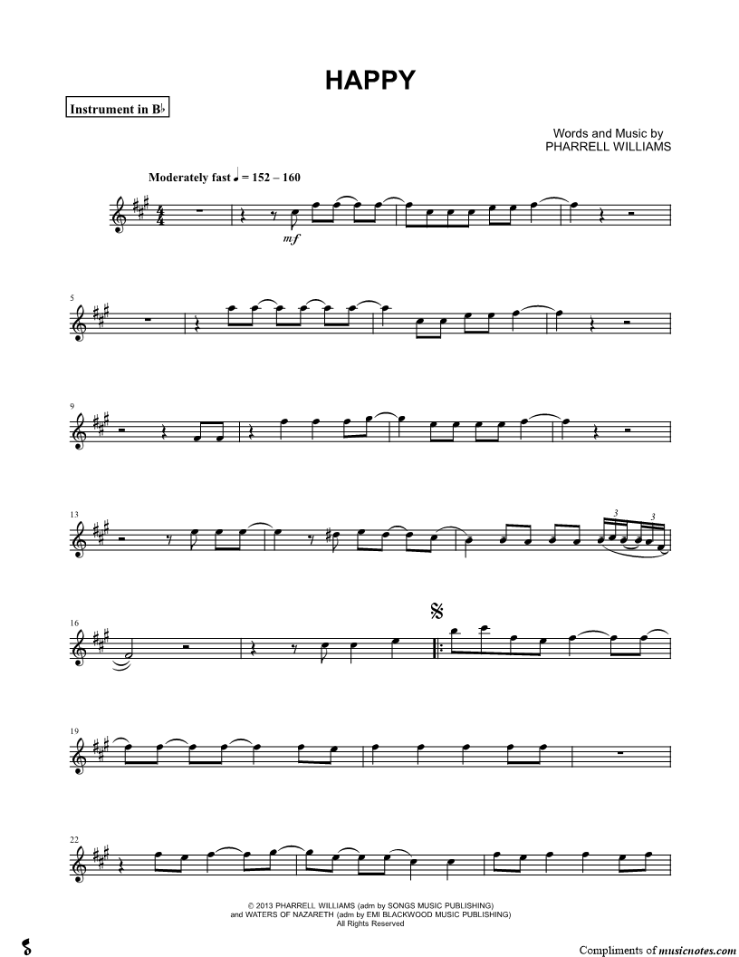 Bb Instrument, range: F#4-C#6 (Trumpet, Soprano Saxophone, Tenor Saxophone or Clarinet) | |
