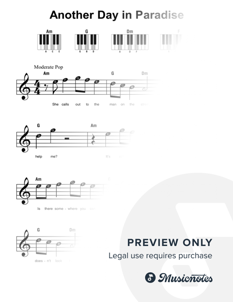 Musicnotes sells a wide variety of digital sheet music products including Singer Pros, Beginner Notes, Choral music, Piano Solos, Lead Sheets, Piano/Vocal/Guitar, Solo and Accompaniment, and fretted instrument tablature.