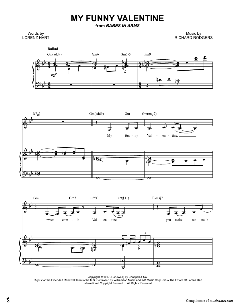 My funny Valentine, sweet comic Valentine, you make me smile with my heart. |