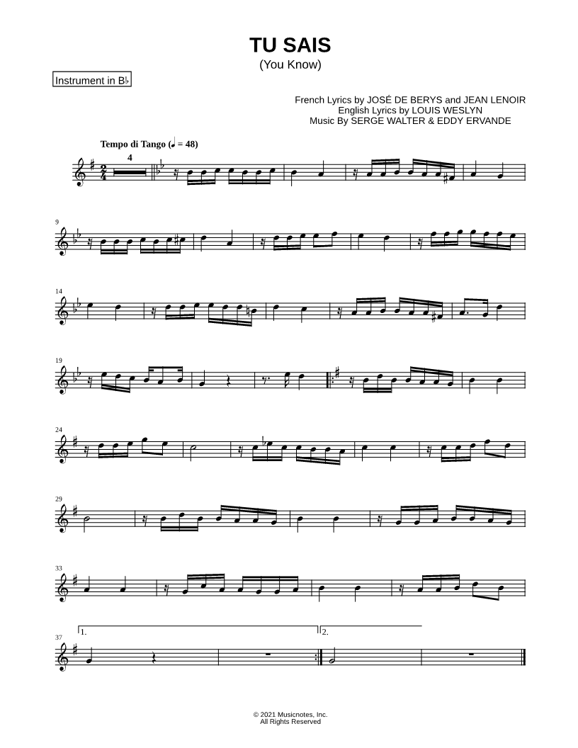 Tu Sais - Bb Instrument |