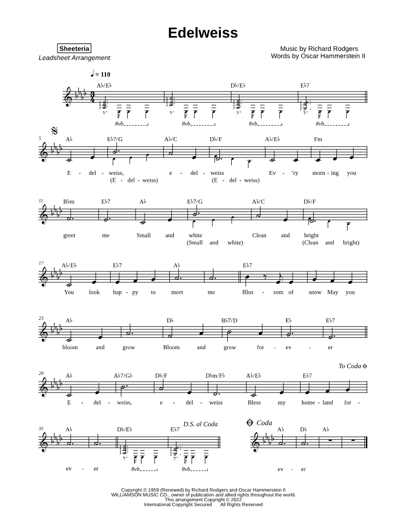Edelweiss, edelweiss. Ev'ry morning you greet me |