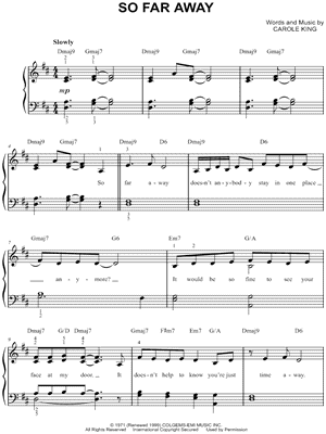 Lyrics begin: "So far away! Doesn't anybody stay in one place anymore?"
