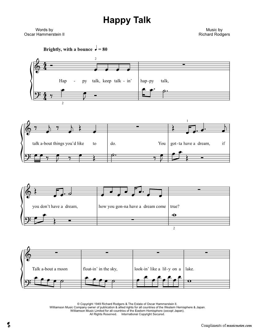 Happy talk, keep talkin' happy talk, talk about things you'd like to do. |