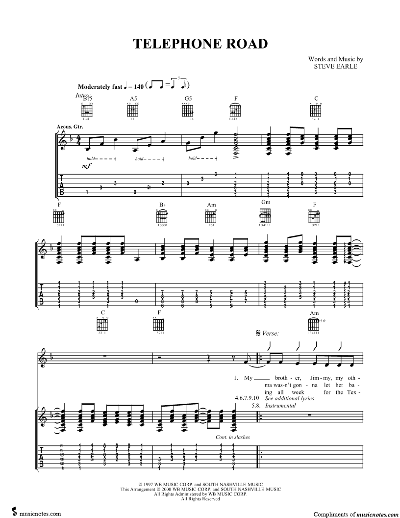 Guitar Tab Guitar/Vocal |