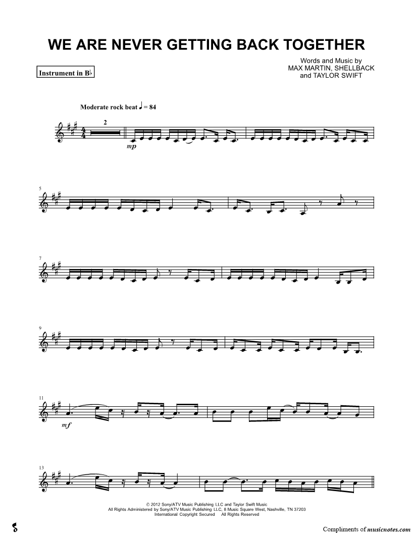 Collection: We Are Never Ever Getting Back Together - Bb Instrument & Piano