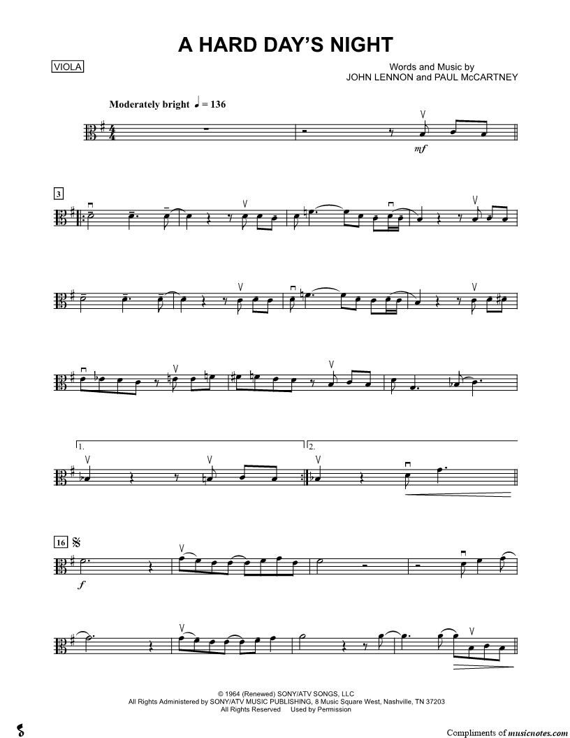 A Hard Day's Night - Viola |