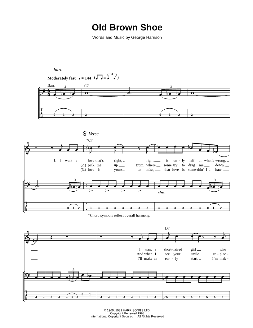 Guitar/Vocal/Chords Bass Tab |