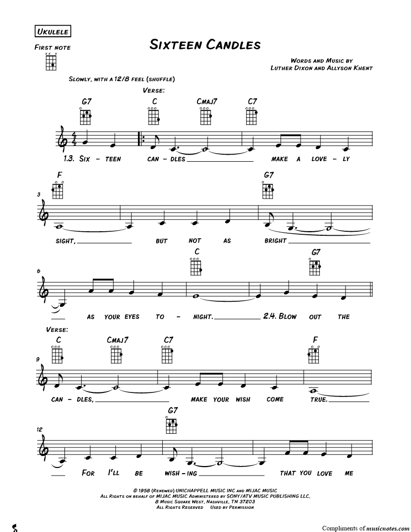 Ukulele/Vocal/Chords Leadsheet |