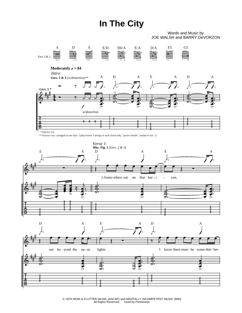 Voice 1, range: A4-C#7 Guitar, range: E3-B7 or Electric Guitar Guitar 2, range: E3-D6 or Electric Guitar Guitar 3, range: A3-B5 or Electric Guitar Backup Vocals | |