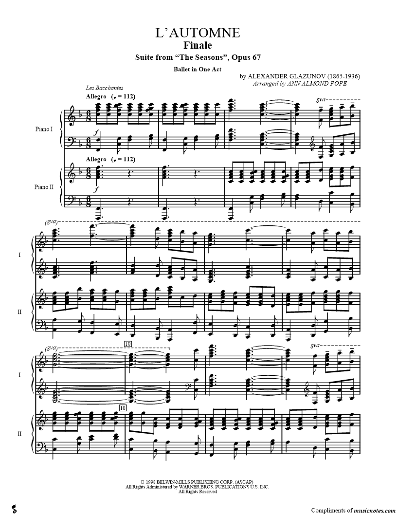 The Seasons Opus 67 for Two Piano/Four Hands |