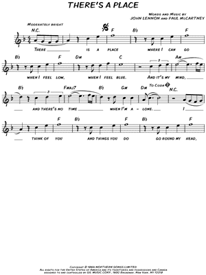 Lyrics begin: "There there's a place where I can go when I feel low,"
