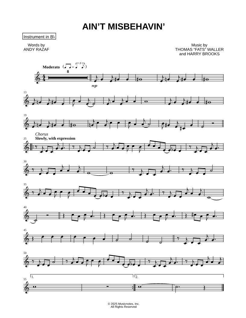 Ain't Misbehavin' - Bb Instrument |