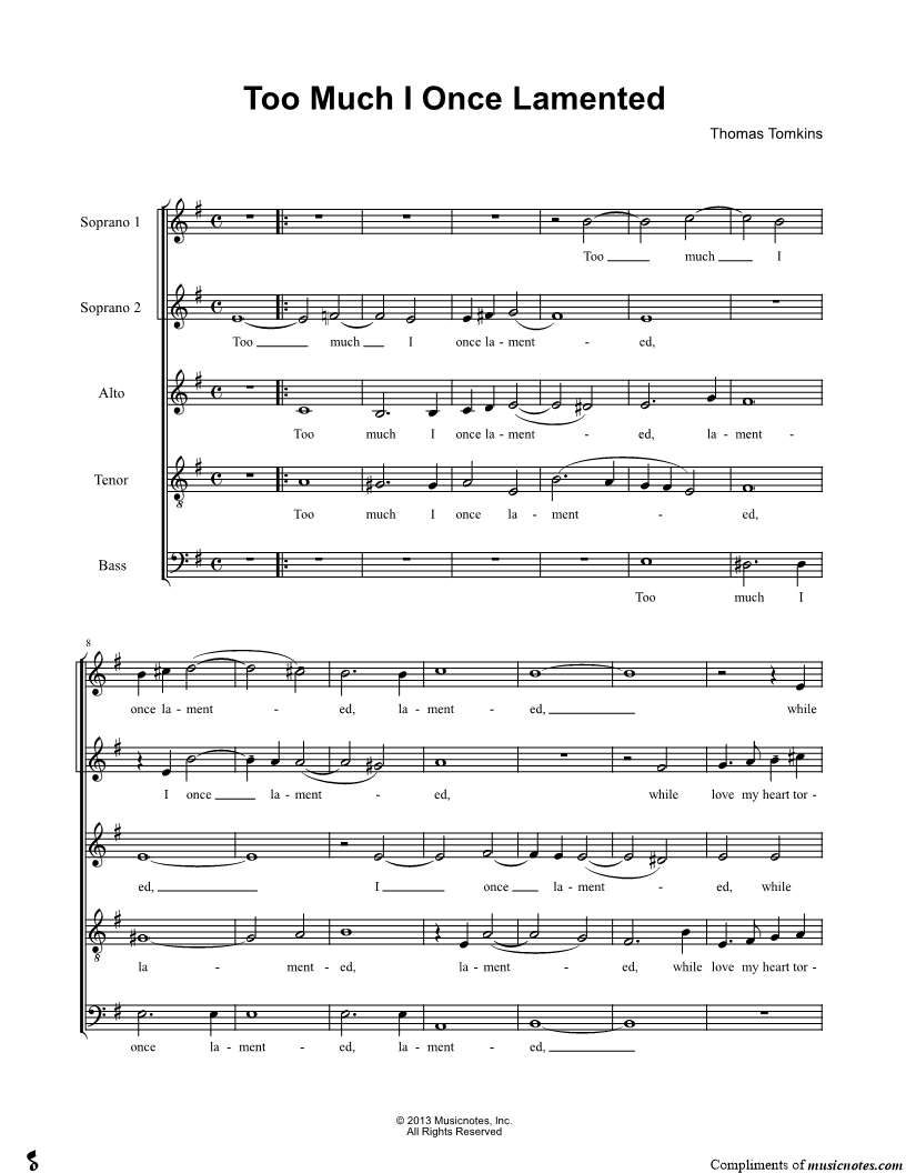 Soprano Voice 1, range: E4-F#5 Soprano Voice 2, range: D4-E5 Alto Voice, range: G3-B4 Tenor Voice, range: B2-G4 Bass Voice, range: E2-D4 SSATB Choir | |