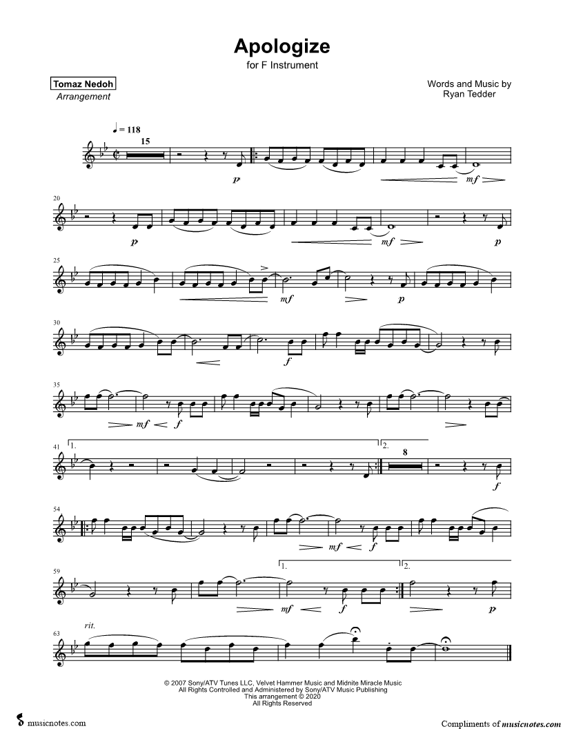 Apologize - F Instrument |