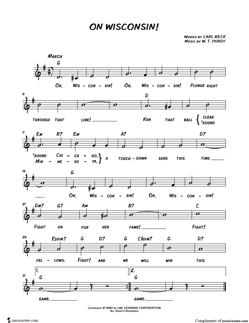 On, Wisconsin! On, Wisconsin! Plunge right through that line! |