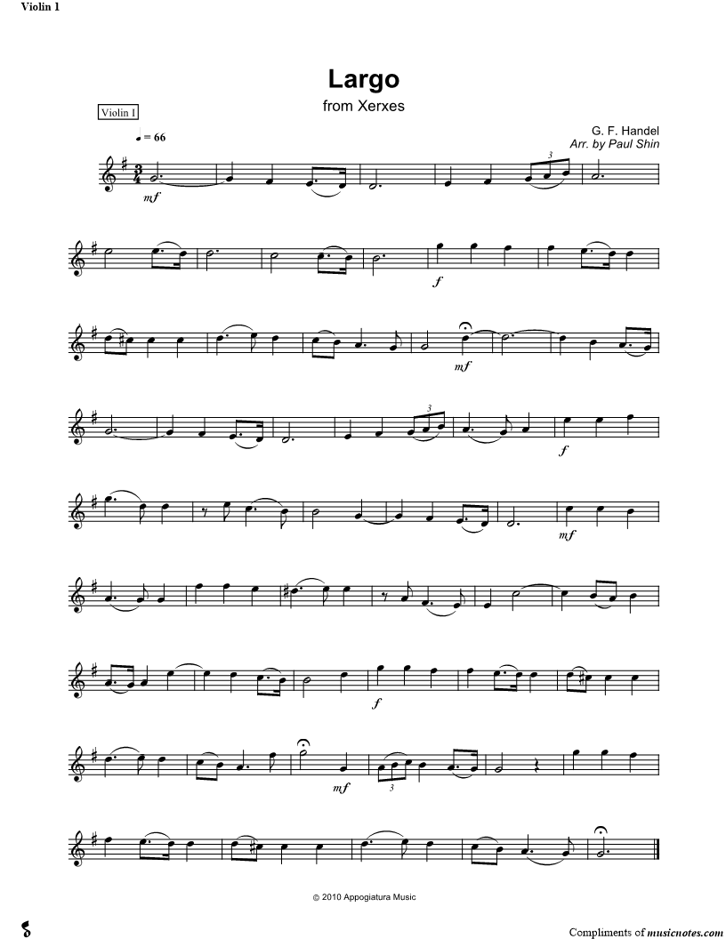 Largo from Xerxes - Violin 1 |