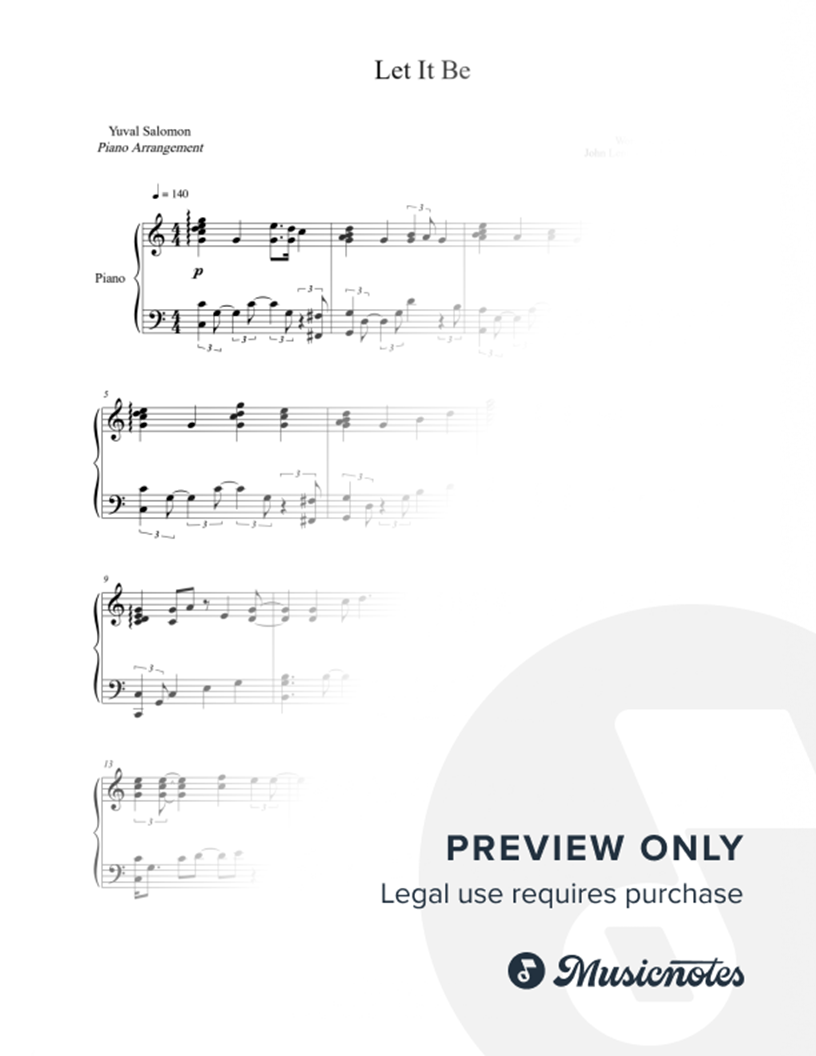 Many of the arrangements on Musicnotes have transpositions available, typically in C Major, as well as 3 sharps and 3 flats. If you do not see your desired key, you can request a transposition by reaching out to Customer Support.